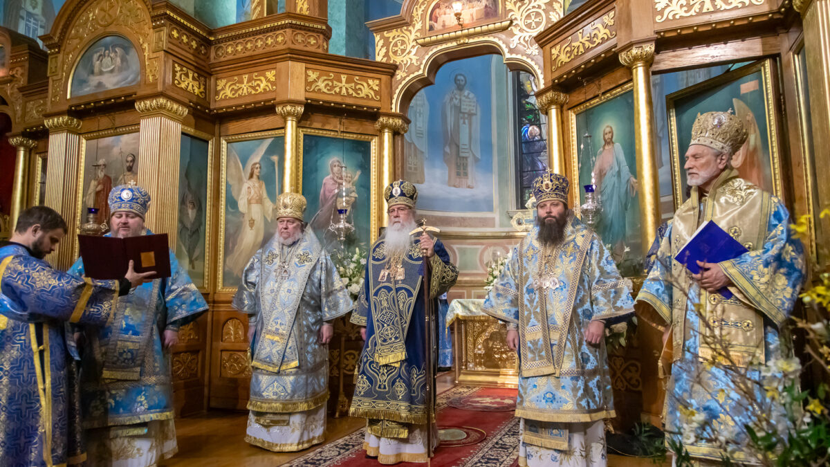 On Monday, April 7, the feast of the Annunciation according to the Julian Calendar, as well as the commemoration of the 100th anniversary of the repose of Saint Tikhon the Confessor and Patriarch of Moscow, with the blessing of His Holiness Patriarch Kirill, and at the invitation of His Grace Matthew Bishop of Sourozh and Administrator of the Patriarchal Parishes in the USA & Canada, His Beatitude Metropolitan Tikhon presided at the Divine Liturgy at New York City’s Saint Nicholas Patriarchal Cathedral.