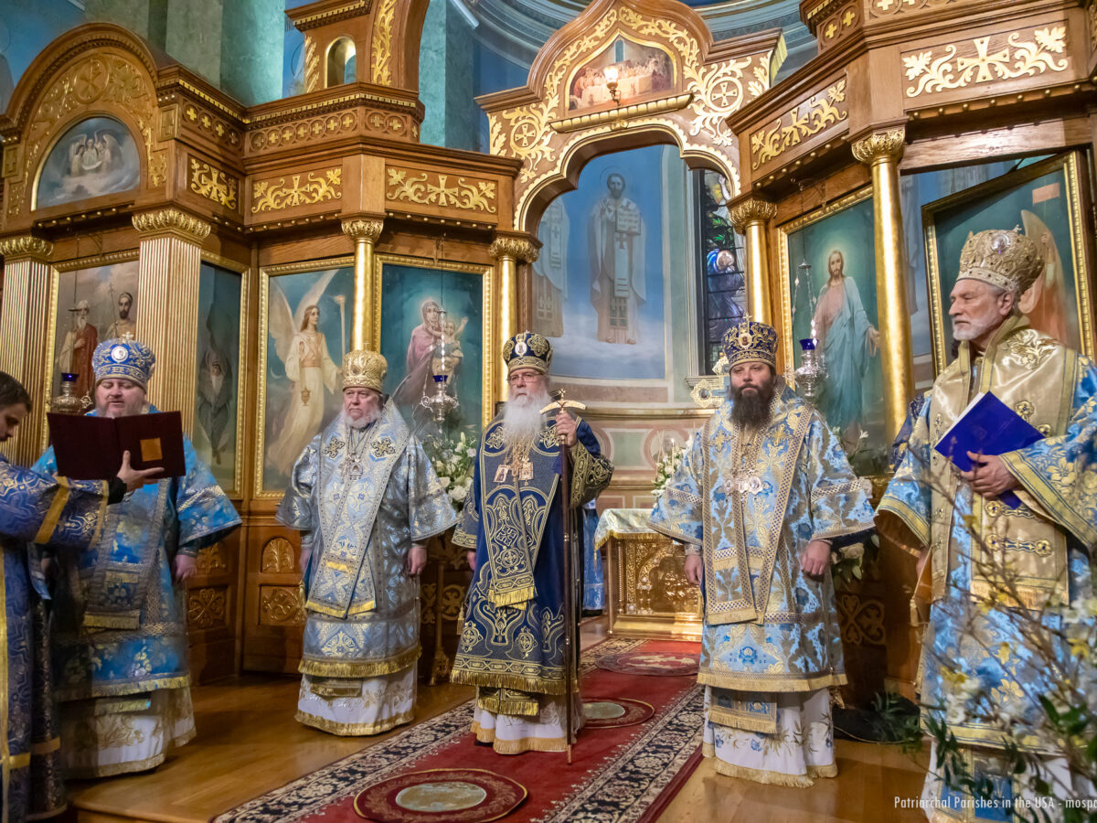 “Today, as we celebrate the feast day of the Annunciation, and as we also celebrate the centennial anniversary of the repose of the holy great hierarch Tikhon, Patriarch of Moscow, Enlightener of North America, it is my great joy to be here at St. Nicholas Cathedral, a temple built with seed money from St. Nicholas II and consecrated by the hand of St. Tikhon himself. For half a decade, St. Tikhon governed the church in America from this cathedral. Though he was engaged in tireless missionary journeys, this was his headquarters. Hence it is appropriate that, on this day, in this place, bishops of the Orthodox Church in America stand and celebrate alongside bishops of the Russian Orthodox Church. St. Tikhon’s legacy is our shared inheritance, a bright guiding star for both of our autocephalous Churches, the Moscow Patriarchate and the Orthodox Church in America. As the bishop of New York, he laid down the blueprint for an American Church; as the first patriarch of Moscow in over two centuries, he profoundly shaped the ethos of the Russian Church, setting a direction for the Church to follow through the era of Soviet persecution and beyond.”