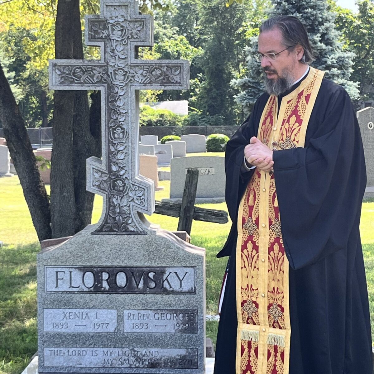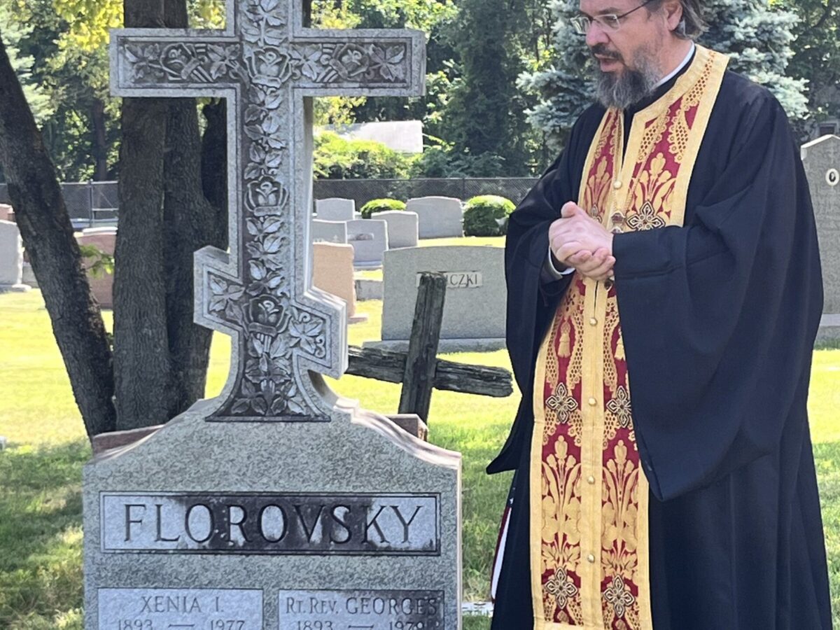 On August 11, a group led by Archpriest Alexander Rentel, Dn. Harrison Basil Russin, Dr. Ionuț-Alexandru Tudorie, and Zachariah Mandell visited St. Vladimir’s Russian Orthodox Cemetery near Trenton, NJ. While there Fr. Alexander led memorial prayers at the graves of former dean Archpriest Georges (+Aug. 11, 1979) and Matushka Xenia Florovsky (+Nov. 5, 1977), as well as the grave of longtime Seminary trustee Anthony Kasmer (+Oct. 11, 2020). The group also visited nearby Rova Farms Cemetery to pray for departed alumnus Archpriest Daniel Skvir (+March 23, 2025). A couple weeks earlier, in July, members of the Seminary community, led also by Fr. Alexander, conducted a memorial service at the graves of Protopresbyter John (+July 22, 1992) and Mka. Marie (+Nov. 24, 2024) Meyendorff.