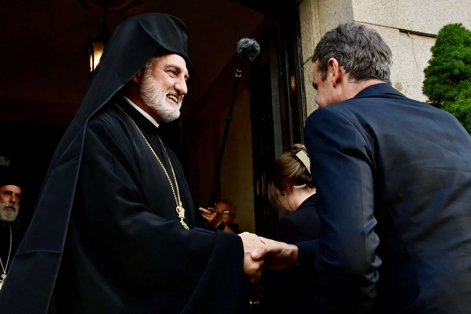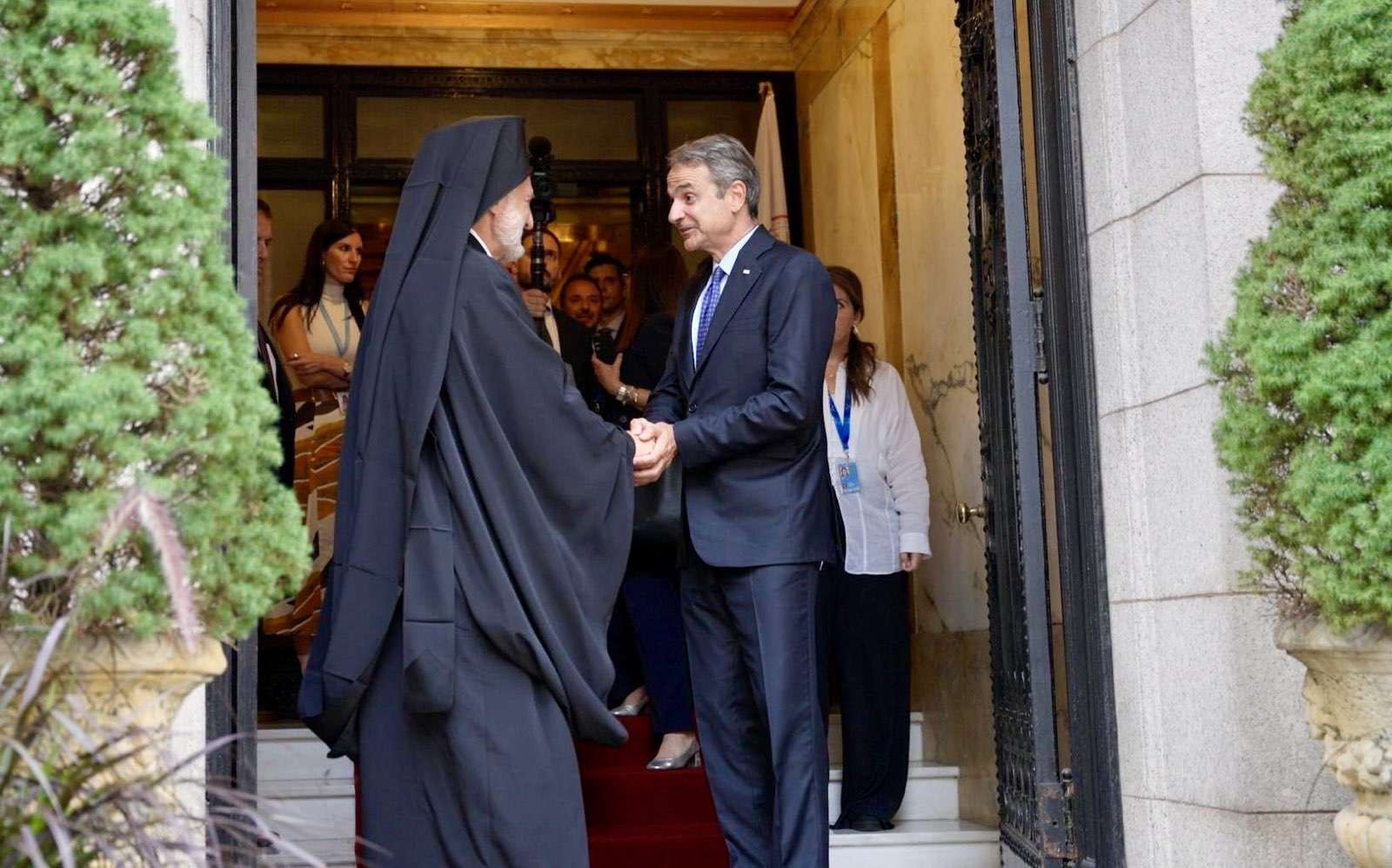 Manhattan, N.Y. — Greek Prime Minister Kyriakos Mitsotakis met on Tuesday with His All-Holiness Ecumenical Patriarch Bartholomew at the headquarters of the Greek Orthodox Archdiocese of America in New York, where he was welcomed by His Eminence Archbishop Elpidophoros of America.