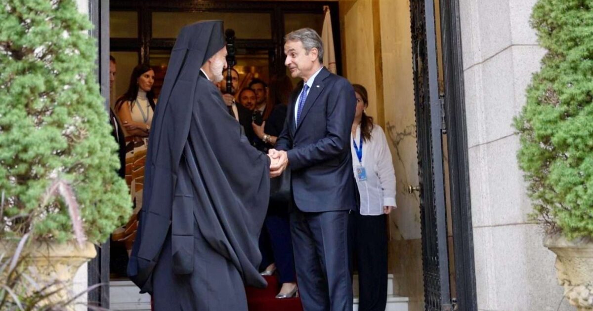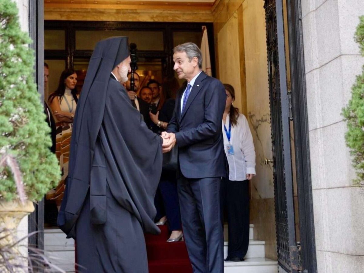 Manhattan, N.Y. — Greek Prime Minister Kyriakos Mitsotakis met on Tuesday with His All-Holiness Ecumenical Patriarch Bartholomew at the headquarters of the Greek Orthodox Archdiocese of America in New York, where he was welcomed by His Eminence Archbishop Elpidophoros of America.