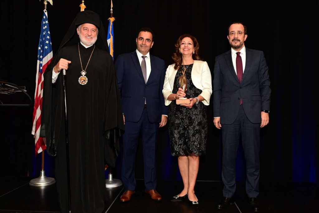 Last Sunday, the Federation of Cypriot American Organizations (FCAO) held its annual testimonial dinner. It was attended by His Eminence Archbishop Elpidophoros of America and President of Cyprus Nikos Christodoulides, both chairperson of the event. This year’s honorees were Panos A. Panay, President of the Recording Academy and GRAMMY Awards and Dr. Marina Theodotou, Executive Director of the Center for Frontier AI Security.