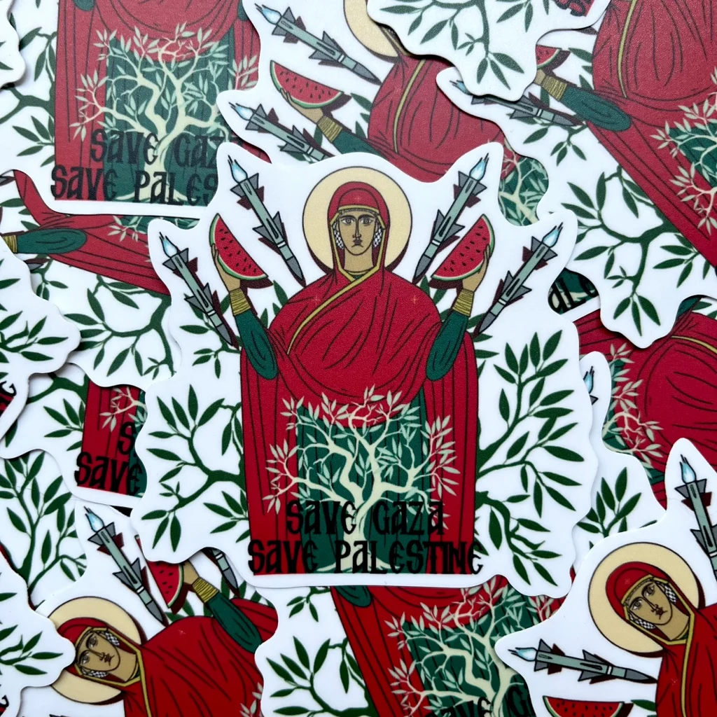 Also known by her Instagram handle @artofmarza, Mary Sarchizian is an Armenian Orthodox artist who draws inspiration from graffiti and iconography, translating these influences into accessible artwork through stickers. Sarchizian has her Bachelor of Arts in history from the University of California Riverside, where she found her passion for archival and documenting work. She sought to meld her passion for art with her history background, and her stickers are an expression of this. Sarchizian utilizes her unique art style to bring Christ’s message to the public and offer comfort to those who have felt ignored or neglected by the church.