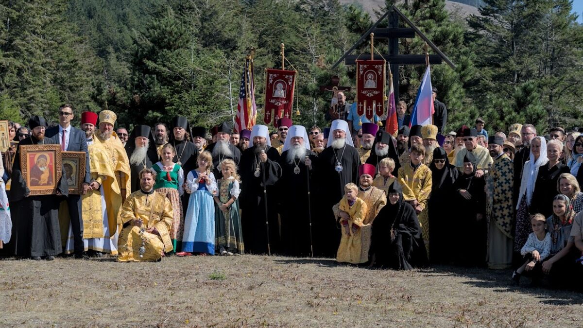The Divine Liturgy was celebrated outdoors at the Chapel of the Holy Trinity and Saint Nicholas. Concelebrating with His Beatitude were Metropolitan Nicholas, His Eminence Metropolitan Maximilian of Irkutsk and Angarsk (MP), His Eminence Archbishop Kirill of San Francisco and Western America (ROCOR), His Eminence Archbishop Daniel of Chicago and the Midwest (OCA), His Grace Bishop Vasily of San Francisco and the West (OCA), His Grace Bishop Theodosius of Seattle (ROCOR), and His Grace Bishop Jacob of Sonora (ROCOR). His Eminence Archbishop Benjamin was also present.