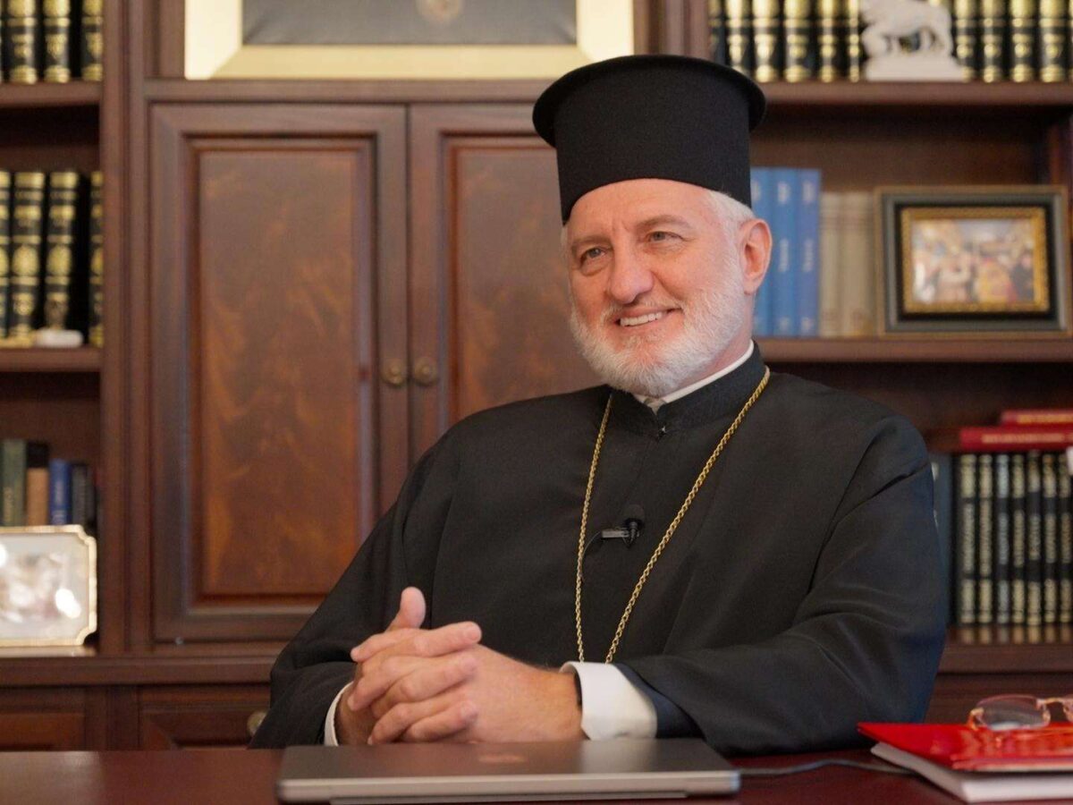 Σεβασμιώτατος Αρχιεπίσκοπος Αμερικής κ. Ελπιδοφόρος: Καλημέρα. Καλώς ήρθατε στην Αρχιεπισκοπή. Είναι και δική μου χαρά να επικοινωνούμε και να συζητούμε ένα τόσο σημαντικό θέμα. Πράγματι παρακολούθησα από βιντεοσκοπήσεις το γεγονός και είμαι έτοιμος να το συζητήσουμε.