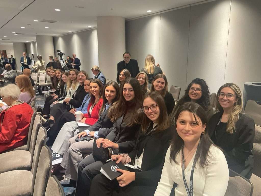 In the evening, the Girl Delegates hosted a dinner conversation featuring Christina Hioureas, Global Co-Chair of the U.N. Practice Group at Foley Hoag. They were joined by their parents as well as Fr. Nicolas Kazarian, Director of the GOARCH Department of Ecumenical, Interfaith, and Inter-Orthodox Relations; Niki Devaris-Morgulis, Director of the Girl Delegate program; and Harry Parks, Program Coordinator and Special Assistant to the Director of the Department of Ecumenical, Interfaith, and Inter-Orthodox Relations.