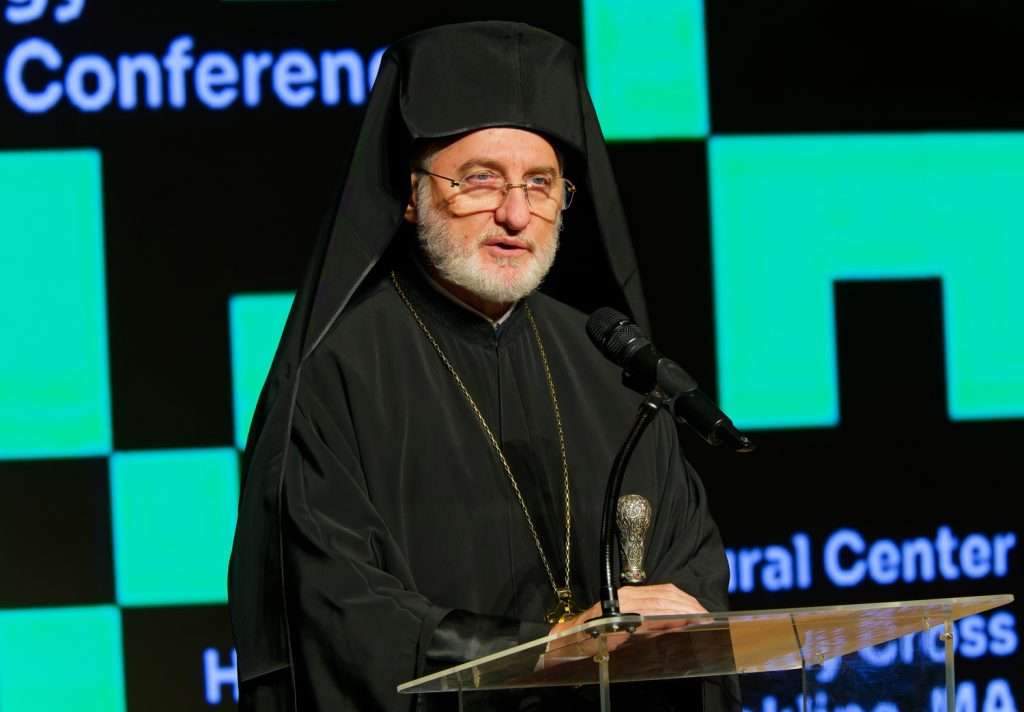 Archbishop Elpidophoros addresses conference attendees. Photo by Orthodox Observer/Dimitrios Panagos
