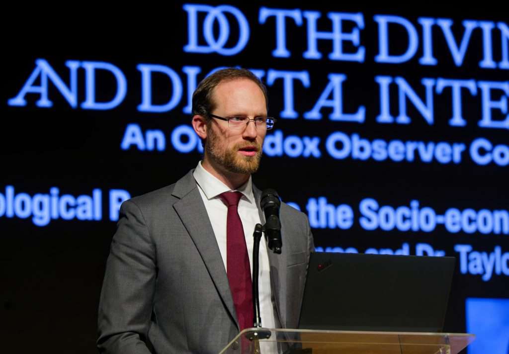 Drs. Taylor Nutter and Mark Graves presented the event’s first panel, entitled “Theological Responses to the Socioeconomic Implications of AI.” The Orthodox Observer‘s Dr. Claire Koen moderated the panel.