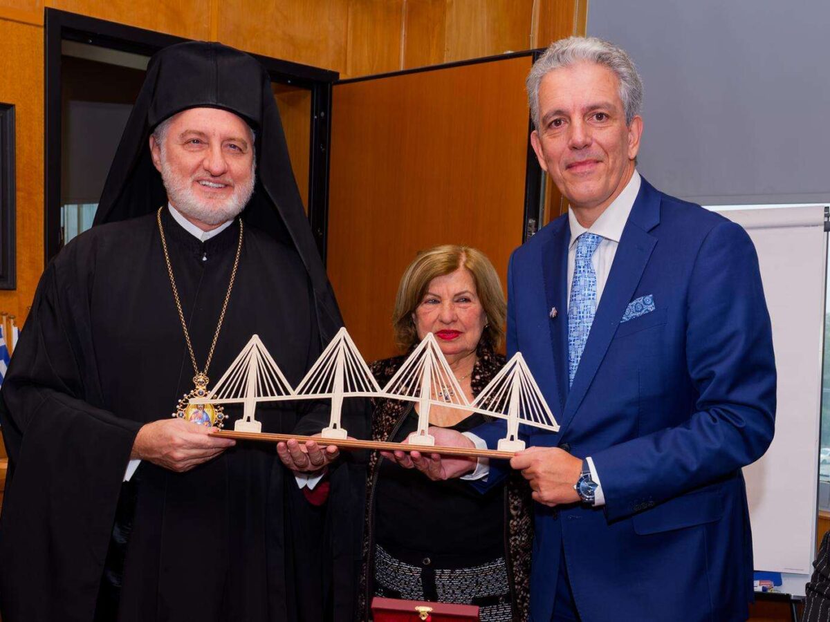 He then offered heartfelt thanks to the Rectorate of the University of Patras, which this year completes 61 years of continuous scientific activity and contribution, for their warm welcome, and to the Department of Management Science and Technology for its decision to name him an honorary doctor. Coming himself from the academic community, he said he knows the serious significance of an honorary doctorate and is therefore grateful to the faculty for their decision. He added that he sees this honor as addressed “not only to me personally, but mainly to the Holy Archdiocese of America,” the largest eparchy of the Ecumenical Patriarchate in the Orthodox diaspora, which he has had the honor to serve since 2019 and which completed one hundred years of life and service in 2022.