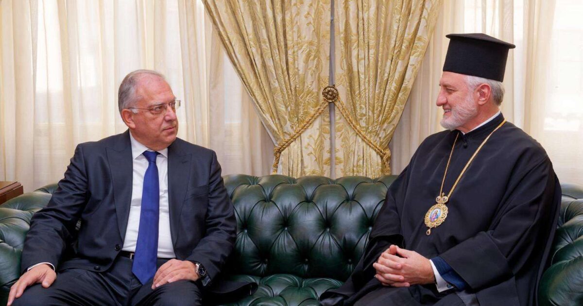 His Eminence Archbishop Elpidophoros of America welcomed Greece’s Minister of Development, Panagiotis Theodorikakos, to the headquarters of the Greek Orthodox Archdiocese of America on Friday, Dec. 12, 2025.