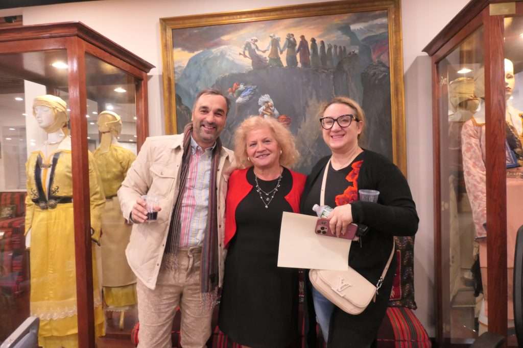 Notably, the evening took place in the presence of a large format painting, The Dance of Zalongo, by Ioannina based awarded artist and educator George Mitsis. The painting is part of the Museum’s permanent collection and movingly represents the tragic event of 1803 and its topography, with women and children wearing traditional costumes falling from cliffs that intentionallyrepresent the dramatic terrain surrounding the Souli villages.