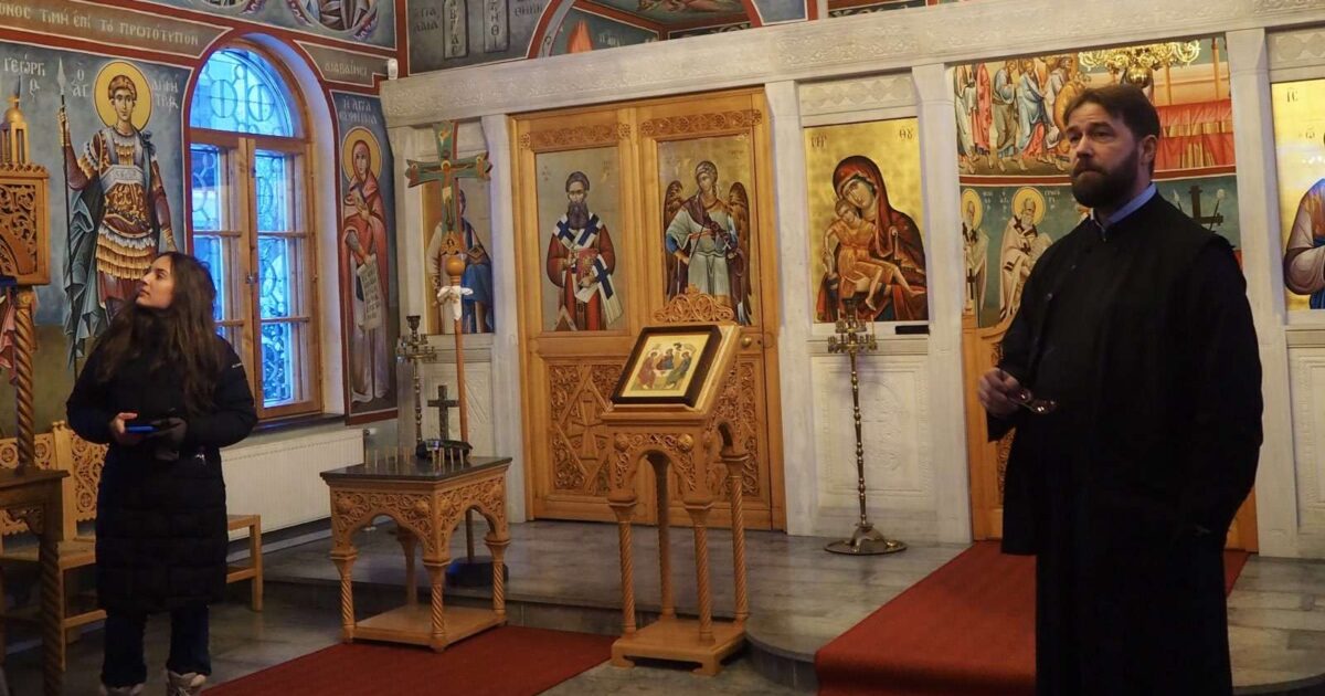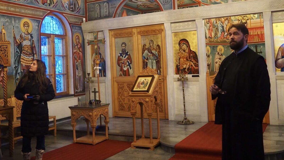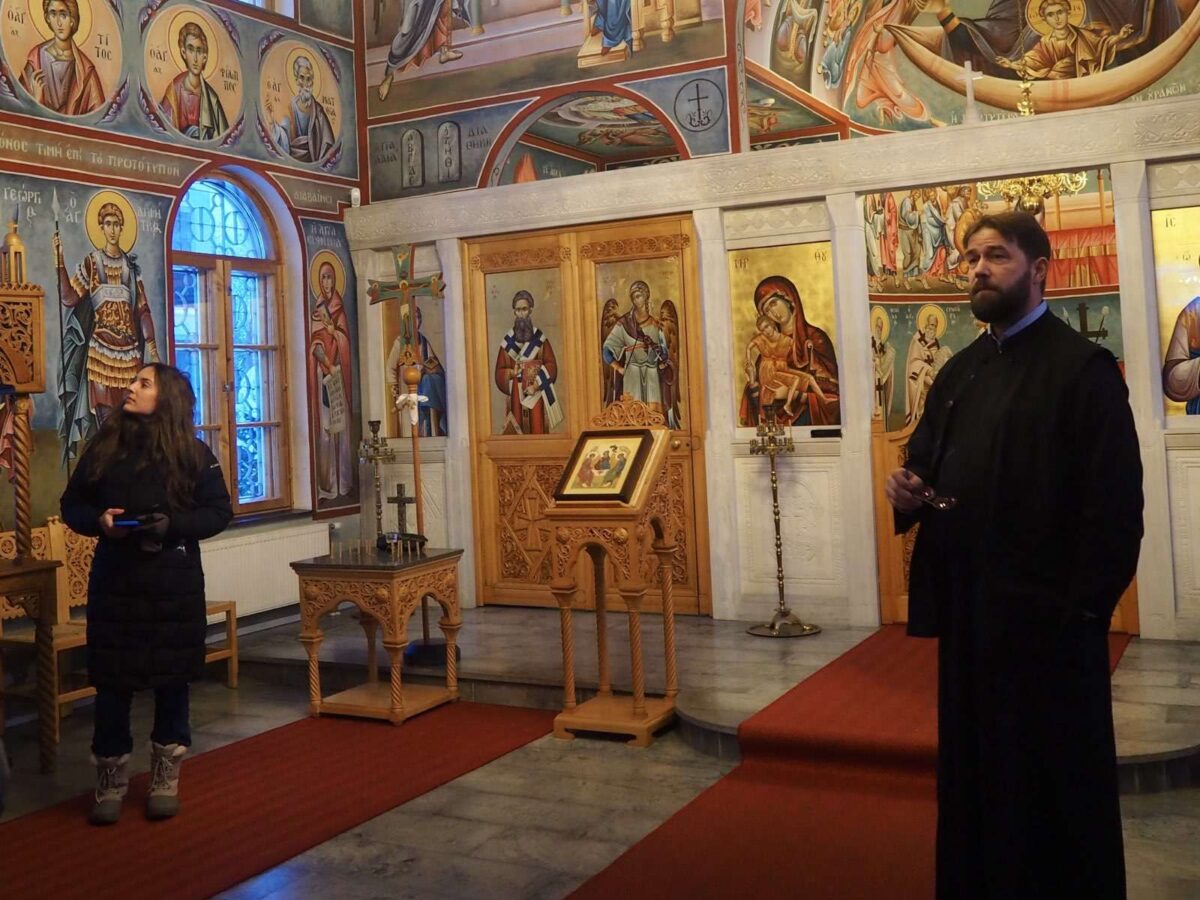 The pilgrims were offered a tour by Fr. Teemu Toivonen, a university teacher in Orthodox practical theology, as well as two current students.