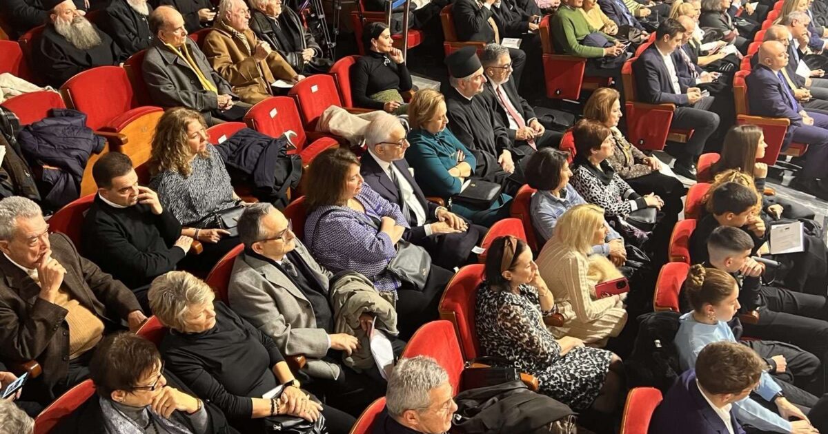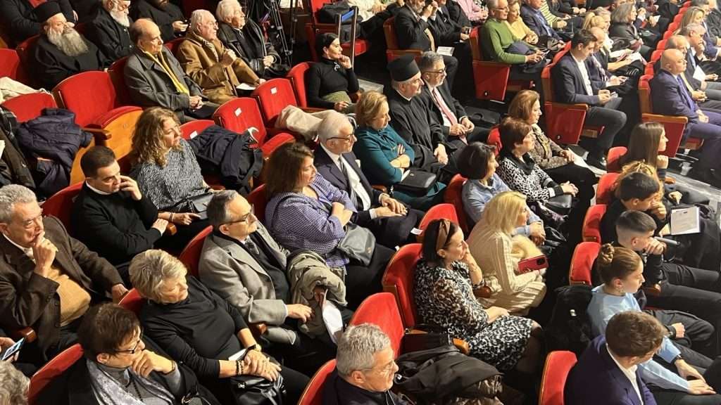 The ceremony concluded with ecclesiastical hymns performed by the “Three Hierarchs” Choir of the School of Theology under the direction of Associate Professor Ioannis Liakos, followed by a performance of *Iridismoi*, based on three musical themes by composer Stavros Kouyioumtzis, arranged and performed on piano by Th.N. Bililis.