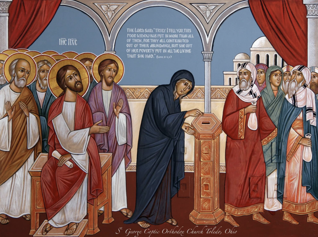 According to Church Fathers like St. John Chrysostom, this widow too “emptied herself” not only of her coins but of her entire livelihood, quietly foreshadowing Christ’s own sacrifice only a few days later. St. John Chrysostom used the term “kenosis” to describe her act of self-emptying.