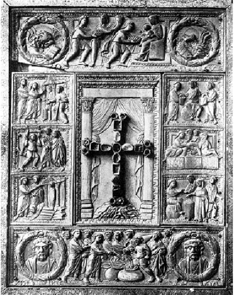 Earliest extant depiction, on the back of an ivory carved Bible cover in Ravenna, 450-499 CE.