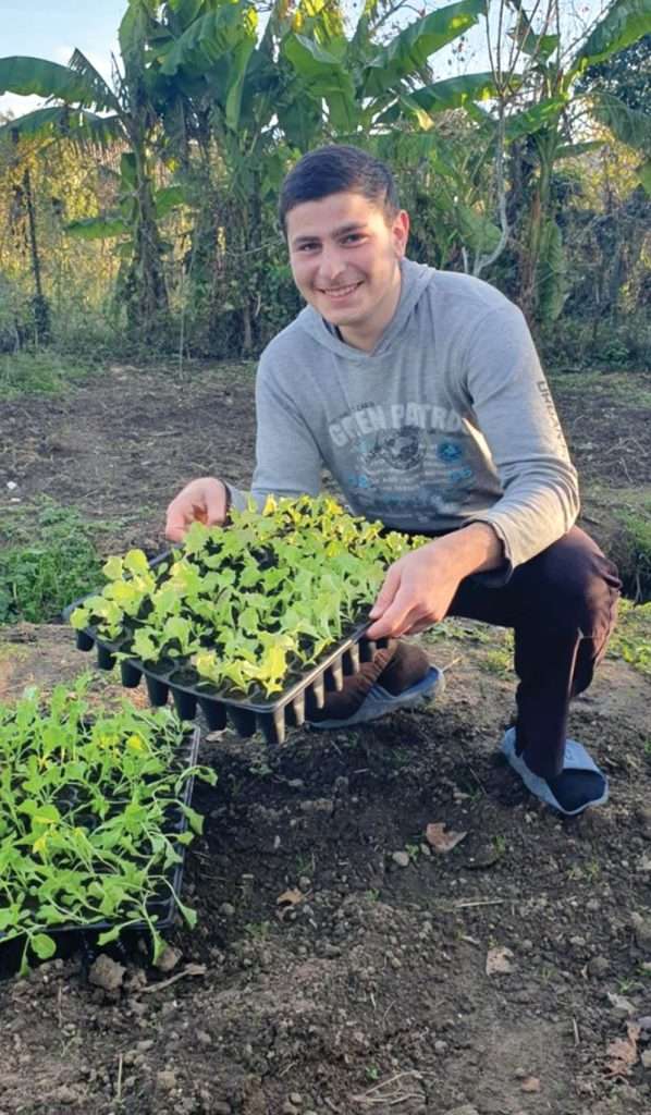 IOCC supplied seeds, fertilizers, and a drip irrigation system, including pipes and reservoirs with all necessary joints and taps. Pumps, electrical cables, and pipes were installed to connect the drip irrigation system to the main water source in the house, and cassettes were provided for the seedling production.