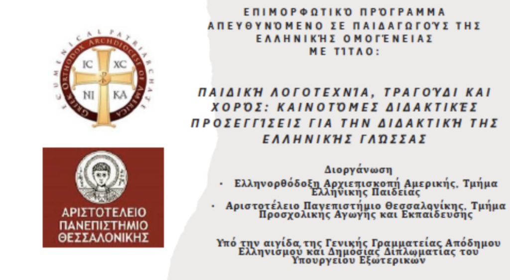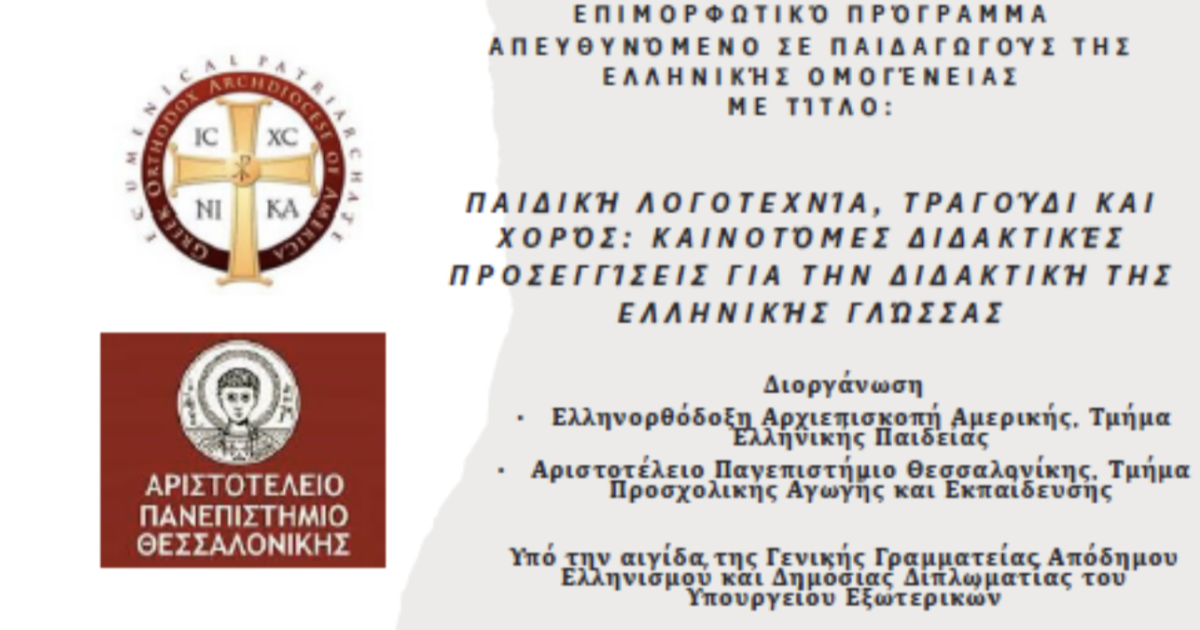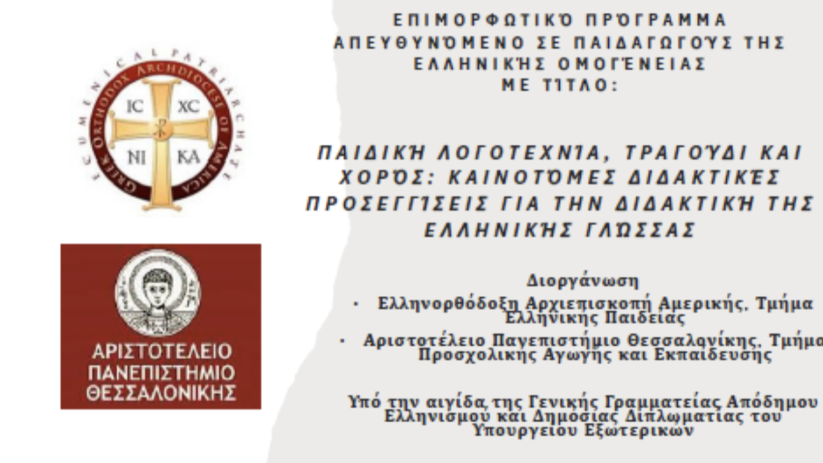 As part of the initiatives for the promotion of the Greek language and  culture undertaken by the Department of Greek Education of the Greek Orthodox Archdiocese of America, headquartered in New York City and legally represented by Protopresbyter Fr. Gregory Stamkopoulos, Director of the Department of Greek Education, a new professional development program entitled “Children’s Literature, Song and Dance: Innovative Teaching Approaches for the Instruction of the Greek Language” will commence in March 2026.