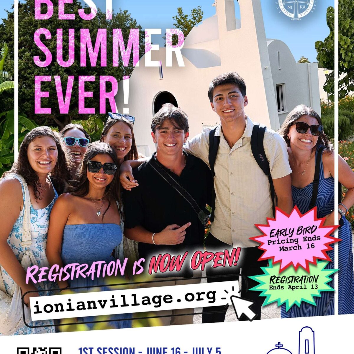 Ionian Village is the national camping ministry the Greek Orthodox Archdiocese of America, and offers two programs every summer. The first is our 20-day youth summer camp for all rising 9th graders through graduated 12th graders (there are two identical session of this 20-day program to choose from). The second is our 10-day “IV Next” travel program for young adults ages 18-25 who have completed at least one year of college or vocational school. Included in both our youth and young adult programs are daily worship services, camp days filled with exciting activities, pool and beach time, and travel days to beautiful islands, historic sites, villages, monasteries and churches. Ionian Village is located in the Peloponnese region of Greece along the Ionian Sea and offers a beautiful coastal campus. Campers live in comfortable cabins and gather daily at our iconic chapel for prayer. The campus features an Olympic-sized swimming pool, a private beach, amphitheater, basketball and volleyball courts, athletic fields, and welcoming outdoor spaces for fellowship and recreation. Meals are shared together in the “Trapezaria” strengthening the familial bonds that define life at Ionian Village. Whether attending as a camper or young adult, participants will have the adventure of lifetime and will be transformed by a truly unforgettable experience!