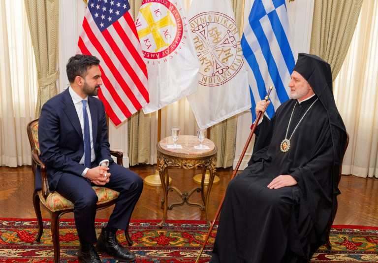 During their meeting, the Archbishop congratulated Mayor Mamdani on his victory, calling it “a sign of hope for many New Yorkers” and “a restoration of trust to governance and to democracy.” His Eminence applauded the Mayor for touching the hearts of those feeling abandoned and marginalized, and for giving them hope. “And in this, we are together, Mr. Mayor,” Archbishop Elpidophoros continued, “because this is what the church is doing, giving hope to people, embracing people without presuppositions, without conditions, loving everyone. So, I’m sure that the two of us will work very well in the future. I am happy that you are elected.”