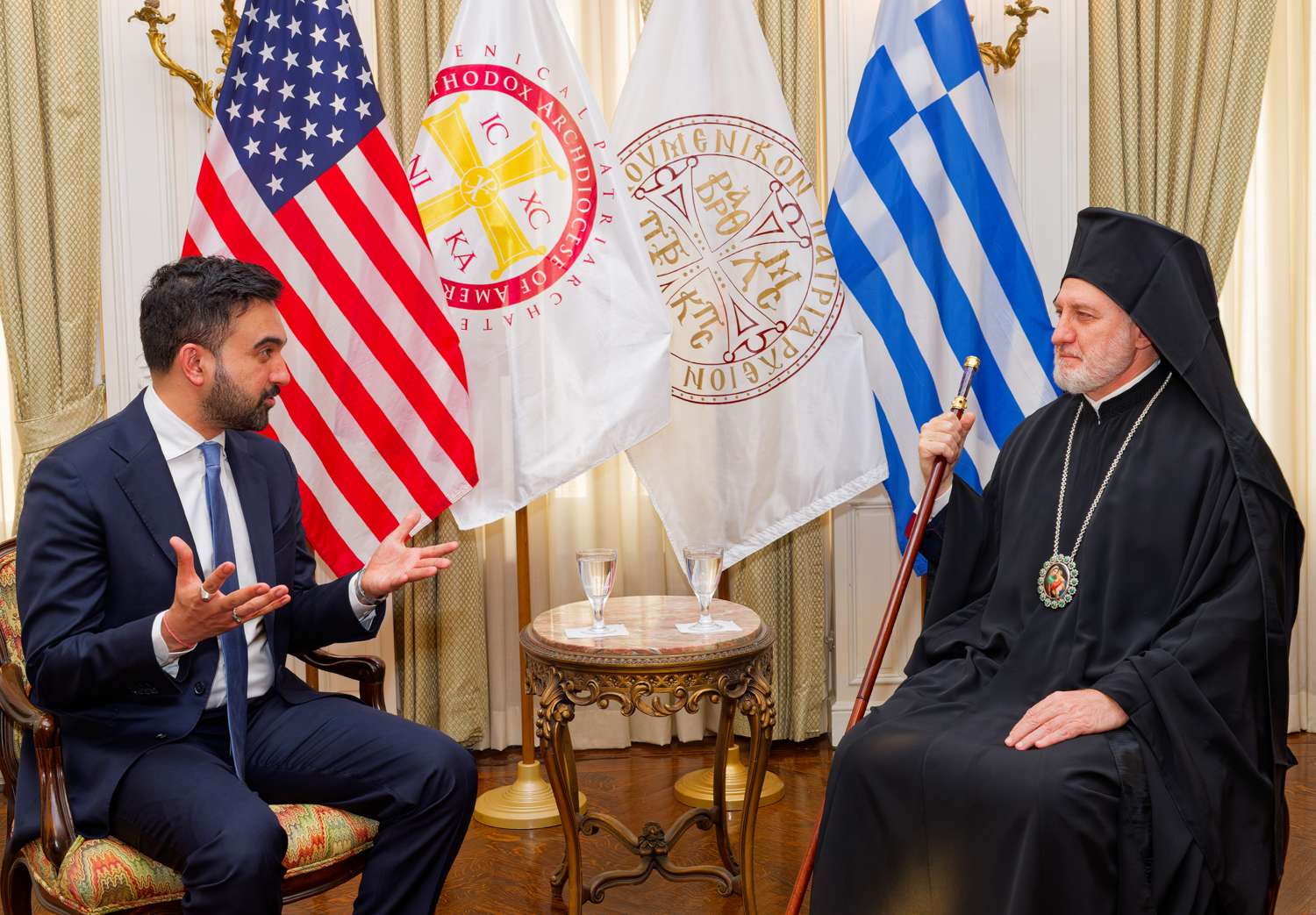 His Eminence Archbishop Elpidophoros of America welcomed New York City Mayor Zohran Mamdani to the Archdiocesan headquarters for his first official visit since taking office. The meeting, marked by warmth and mutual respect, provided an opportunity for a meaningful introductory conversation focused on shared values, public service, and the well-being of New York City’s diverse communities.