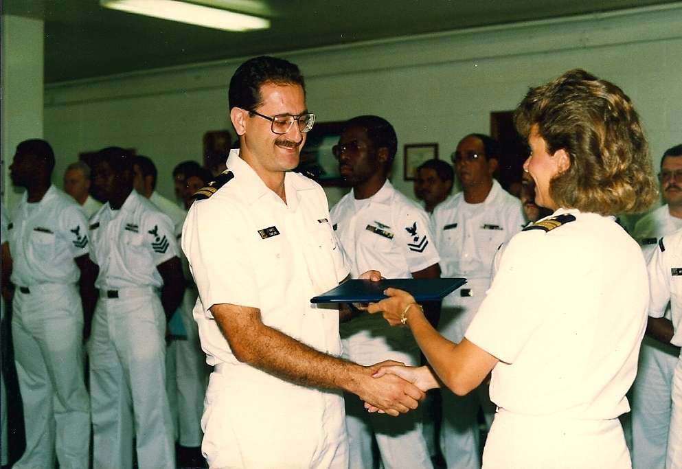 Fr. Bill receives a Navy Commendation Medal at Norfolk Naval Station, 1990. Photo courtesy of Fr. Bill Bartz