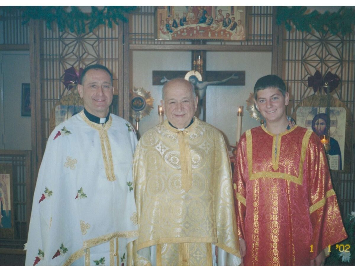Fr. Bill Bartz, with his father, Fr. George Bartz, and his son George, 1999. Photo courtesy of Fr. Bill Bartz