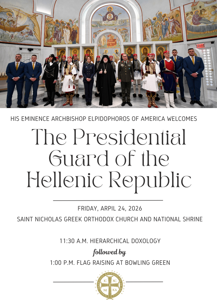 Please join His Eminence Archbishop Elpidophoros of America on Friday, April 24, 2026 to welcome the Presidential Guard of the Hellenic Republic to New York City for the Greek Independence Parade Weekend.