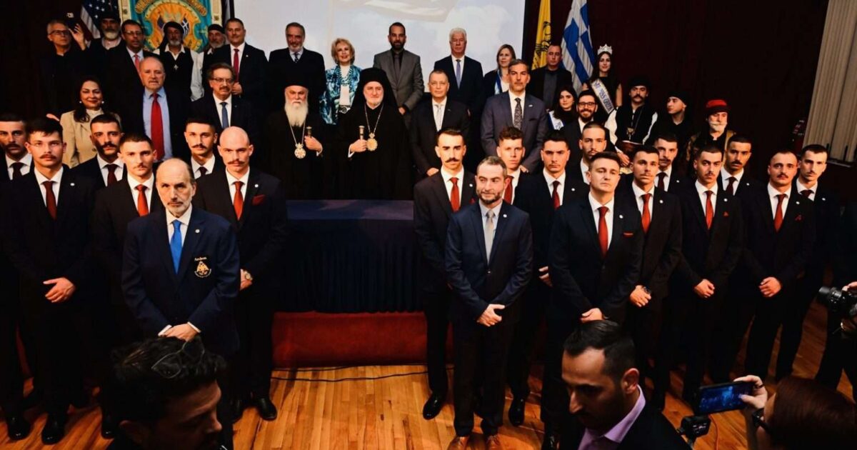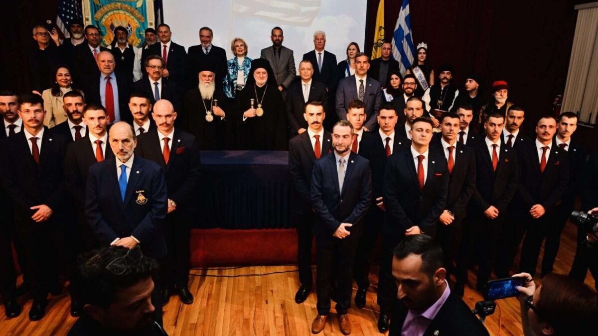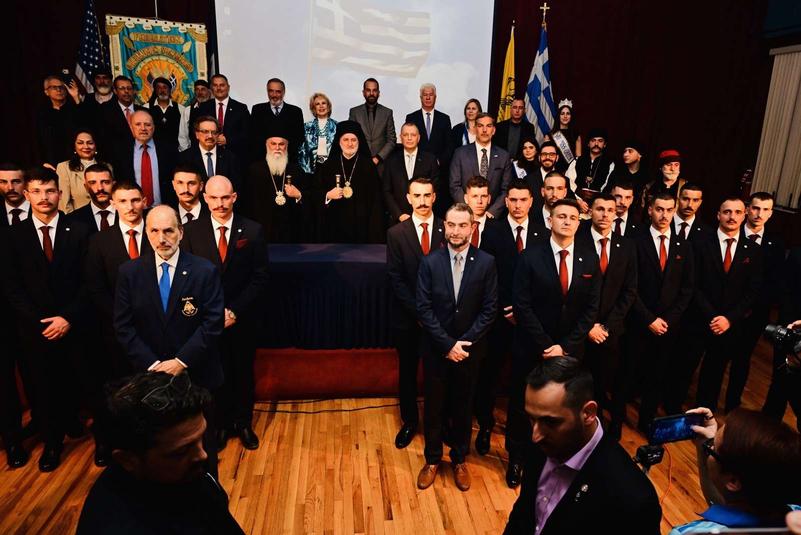 On Thursday evening, Archbishop Elpidophoros attended the final pre-parade community gathering at the Stathakion Cultural Center in Astoria, where the Evzones also appeared. The gathering, coordinated by Louis Katsos, chairman of the 45-member 2026 Greek Independence Day Parade Committee, is traditionally held in the days before the parade and brings together parade organizers, federation leaders, community representatives, clergy, honorees and families preparing to march.