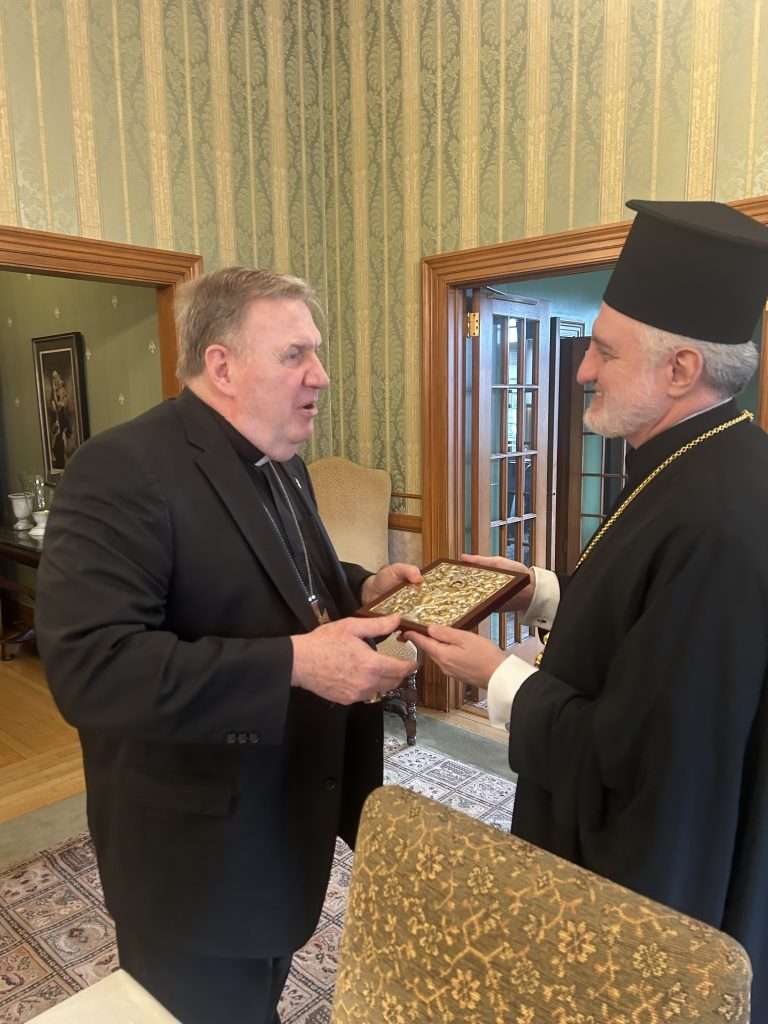 On Tuesday, April 28, 2026, in a spirit of Paschal joy, His Eminence Archbishop Elpidophoros of America visited the residence of His Eminence Cardinal Joseph Tobin, Roman Catholic Archbishop of Newark. The meeting provided an opportunity for the exchange of heartfelt Easter greetings and the reaffirmation of their fraternal bonds in Christ.
